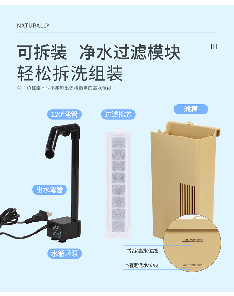 • 內置過濾器,水質穩定,使用方便